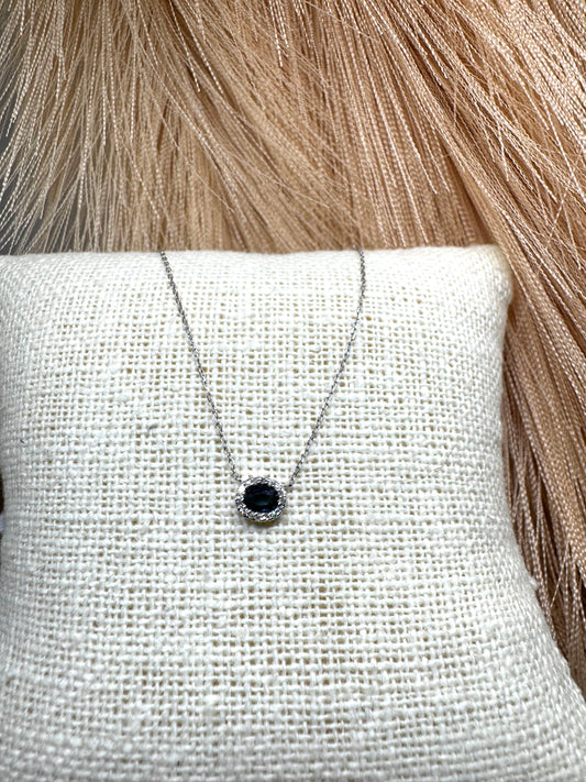 14K White Gold Oval Sapphire & 0.10ctw Diamond Halo NecklaceRegular price $600.00 USDRegular priceUnit price / per-