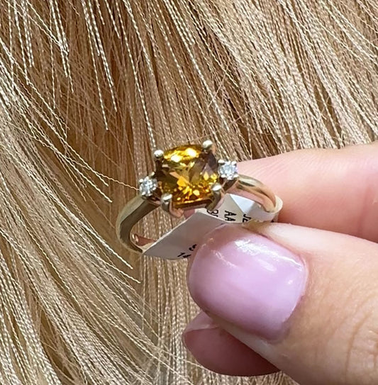 14KY Checkerboard Cut Citrine AA Orange (DIA X2 - 0.10CTW) Size 6.75 (3.8g)Regular price $650.00 USDRegular priceUnit price / per