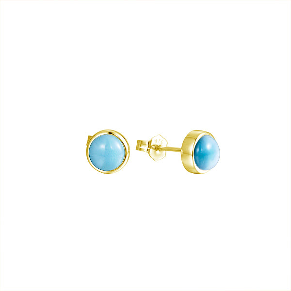 14K Yellow Gold Larimar Earrings 8mm