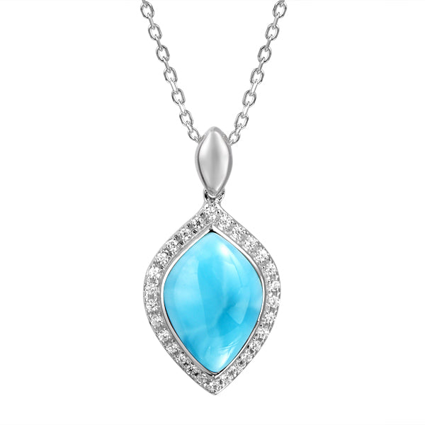 •Sterling silver and rhodium finished larimar an CZ small pear pendant